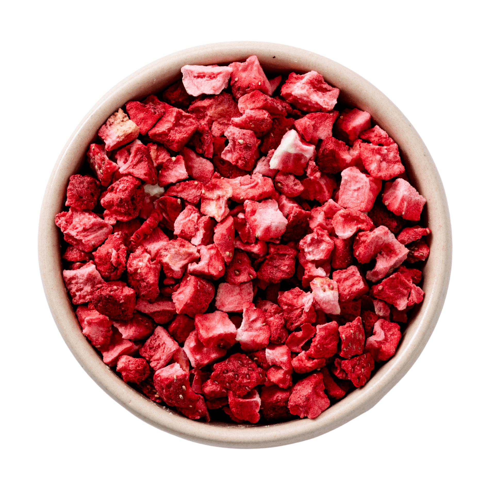 Ces morceaux de fraises sont fabriqués à partir de fraises mûres à 100%, fraîchement congelées. Grâce à un processus de lyophilisation particulièrement doux, les propriétés naturelles et typiques des fruits, telles que la forme, la couleur, l'odeur et le goût, sont préservées. Les morceaux mesurent environ 2 à 10 mm. Les fraises sont riches en fibres.